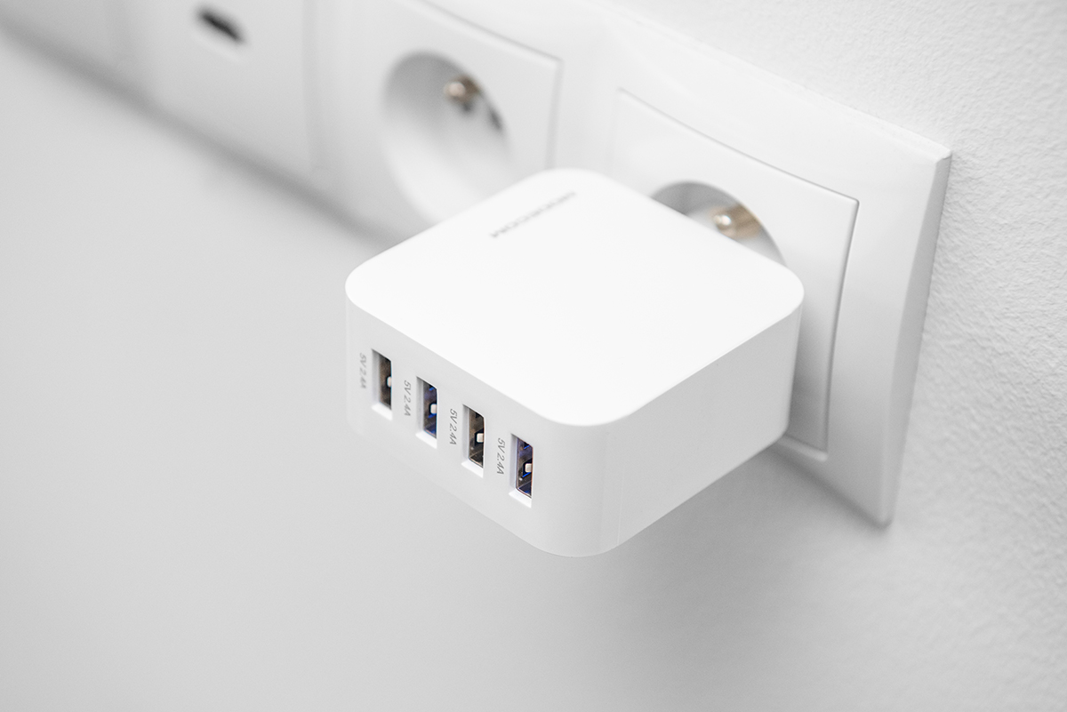 Szybka ładowarka sieciowa CZTERY PORTY x4 USB 40W 2.4A QC MODECOM MC-4U