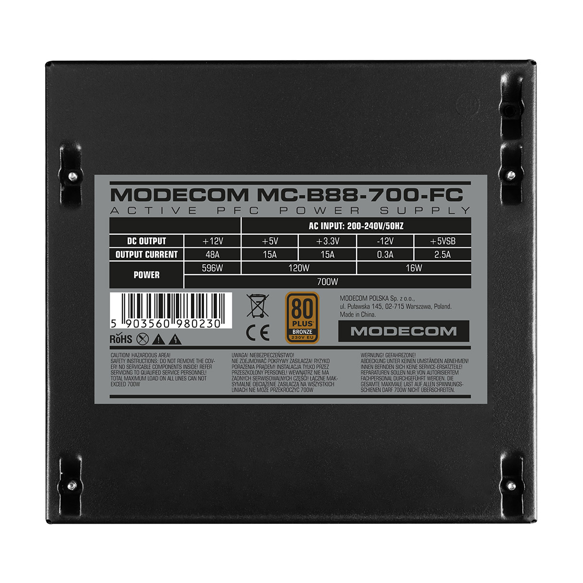 Zasilacz ATX 700W 80 Plus Bronze MODECOM MC-B88-700FC 120 mm APFC bez opakowania