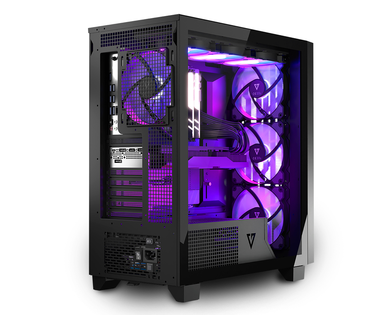 Chłodna praca komponentów jest najważniejsza. Dzięki temu pracują one efektywniej oraz zwiększa się ich żywotność. Fabrycznie zainstalowane wentylatory ARGB (3 x 140 mm na panelu bocznym oraz 1 x 140 mm z tyłu) zapewniają dobry przebieg powietrza skutecznie chłodząc pracę karty graficznej i procesora.